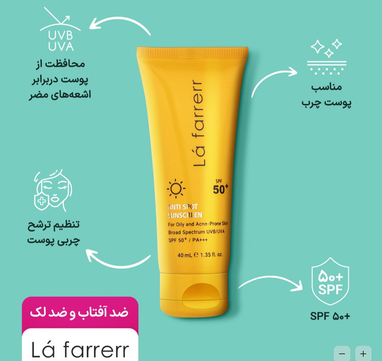 ضد آفتاب پوست چرب و آکنهدار لافارر یکی از موفقترین ضد آفتابهای تخصصی بازار ایران محسوب میشود. عملکرد آن در کنترل چربی و جلوگیری از برق افتادن پوست در طول روز کاملاً محسوس است. برخلاف بسیاری از ضد آفتابها، این محصول باعث تشدید آکنه یا ایجاد جوشهای زیرپوستی نمیشود و حتی به مرور به شفافتر شدن پوست کمک میکند. ترکیبات ضد لک آن در کنار SPF50، نقش مؤثری در پیشگیری از تیرگی و لکهای ناشی از آفتاب دارند. بافت سبک و جذب سریع باعث شده استفاده مداوم از آن خستهکننده نباشد و بهراحتی در روتین روزانه جا بگیرد. این ضد آفتاب برای افرادی که همزمان به محافظت بالا، کنترل چربی و جلوگیری از لک نیاز دارند، یک انتخاب کاملاً حرفهای و مطمئن است.